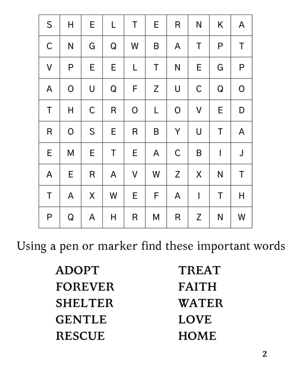 By purchasing this 8 page childrens activity book, you’re supporting Faith‑Ful Paws Legacy and helping us make a real difference in the lives of animals. All sales will go directly to animal shelters in need.
